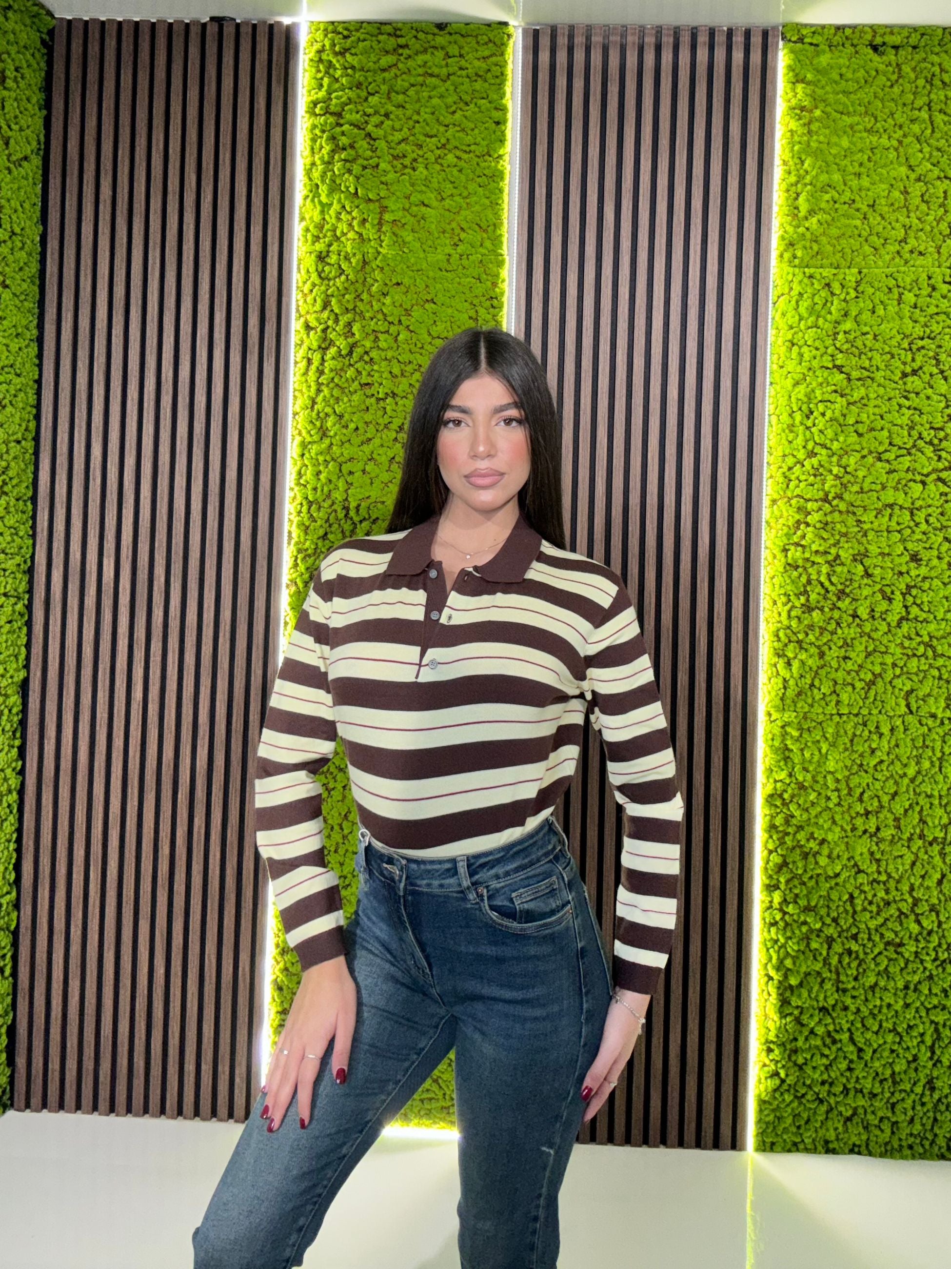 maglia in lana rasata con colletto
